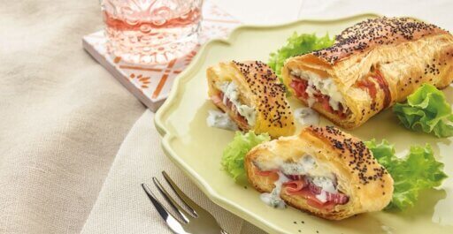 생햄을 파이 반죽롤 위에 놓아줍니다.