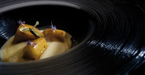 사각으로 자른 고르곤졸라 치즈를 가지 위에 올려줍니다.
